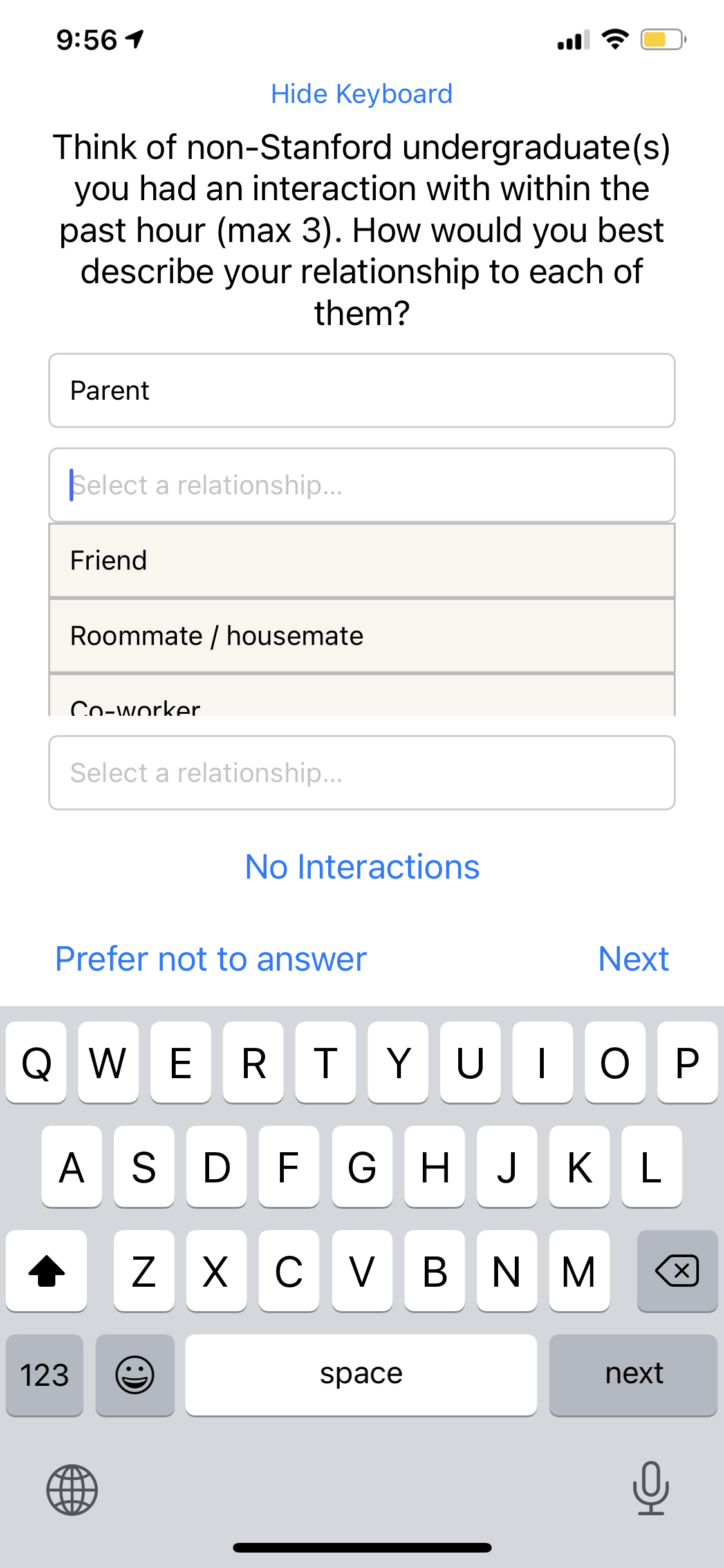 Una aplicación en React Native que envía notificaciones periódicas para que los usuarios completen encuestas. Se utilizó en un estudio académico que incluyó a más de 3,000 participantes.
